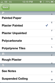 Select the type of ceiling finish that you are describing and then press back on the top left hand side
