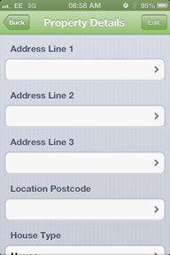 to note the property postcode, a multi-select box used to note what type of property it is, a multi-select box