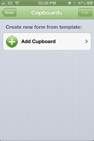 To add a cupboard press the white box that has ‘(0)’ written in and a new screen will appear that looks like this,