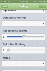 The recessed button slider labelled ‘recessed spotlights’ is a slider
