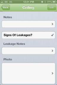 and a small blue tick will appear on the right hand side of the ‘Signs of leakages?’