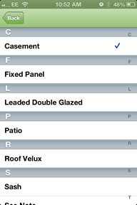 of the screen to return to the window template. The selected window type will now be shown in the window type box.