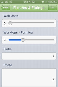 The worktops - formica slider is a quick and easy way to total up the number of worktops in that room.